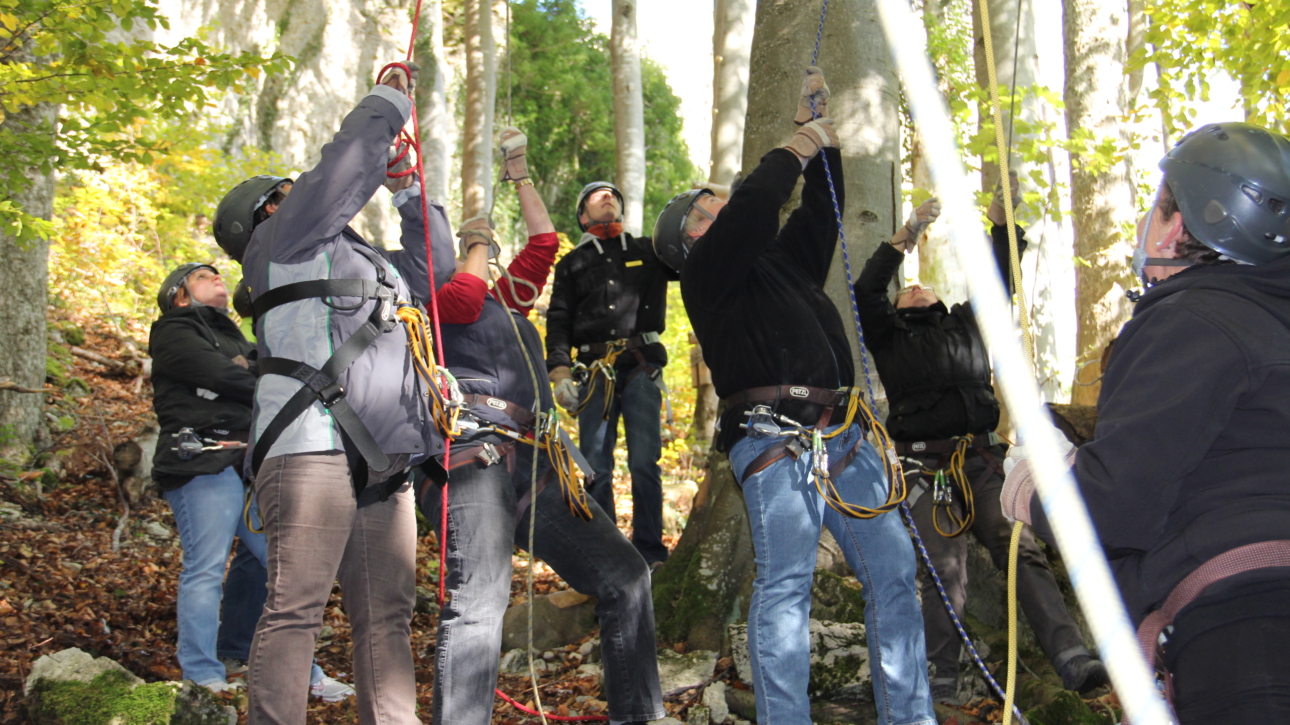 Unter Anleitung eines erfahrenen Coaches werden in der Höhe Aufgaben gemeistert, die Teamgeist, Konzentration und gegenseitige Unterstützung erfordern.